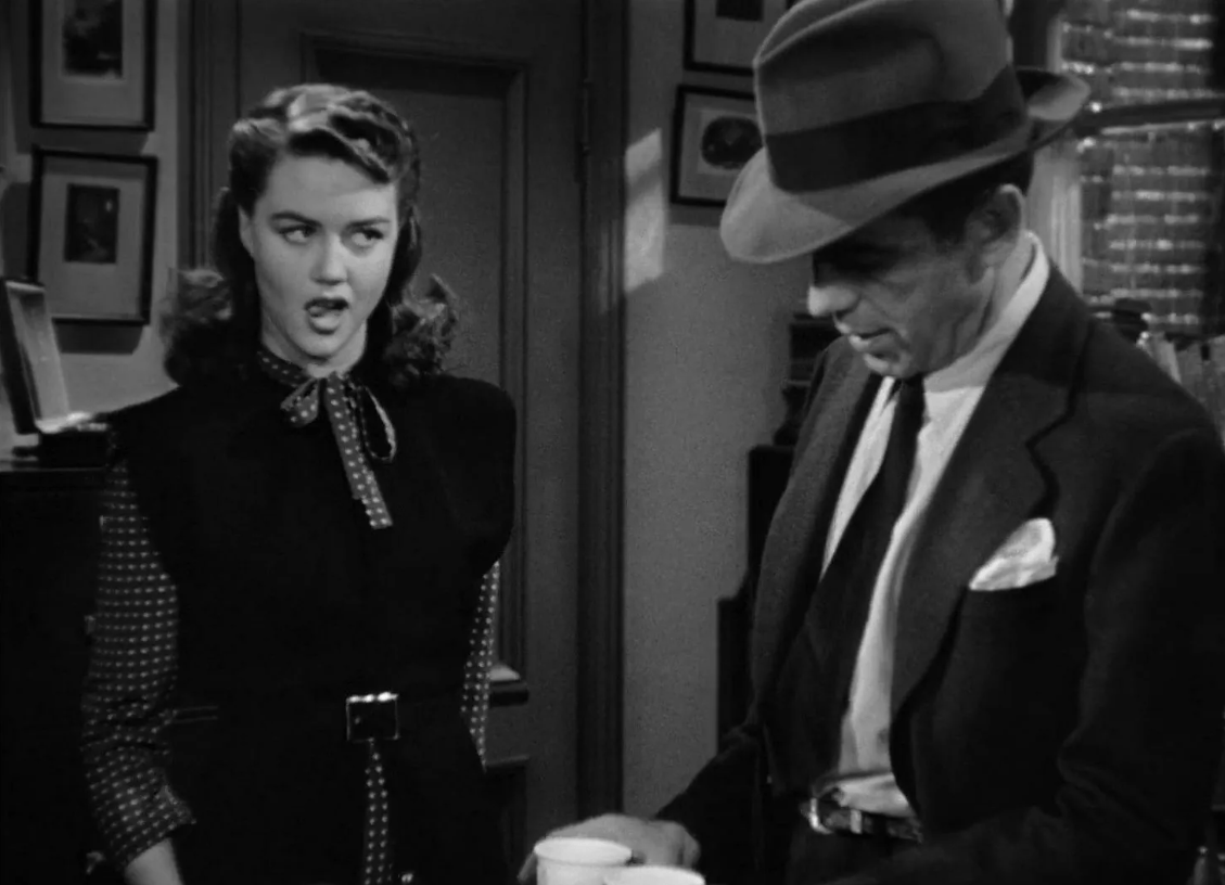 Right from the first image of a silhouetted Bogart lighting Bacall’s cigarette followed by a title sequence with two smoldering cigarettes blowing away in an ornate ashtray in the corner of the screen, The Big Sleep launches us into a shadowy sensuous midnight cocktail world filled with morally ambiguous cynicism, seedy and colorful characters and a dark morass of intrigue. Featuring a (some night say convoluted!) plot of labyrinthine machinations involving jaded gumshoe Philip Marlowe (Humphrey Bogart) being summoned to the mansion of a frail rich patriarch and tasked with detangling his wild-child daughter’s (Martha Vickers in a sensationally compelling performance of intense sensuality) various monetary debts she has accrued to the Los Angeles underworld. While there, Marlowe meets sophisticated, urbane older sis Vivian (Lauren Bacall) and the two begin a flirtation that carries them through their ensuing plunge into the shady atmospheric world of casinos, blackmailers, killers, pornographers, drug addicts, voyeurs, all manner of human viciousness and a seemingly endless stream of horny nymphettes and hard-boiled dames (Dorothy Malone absolutely steals her scene as a bookstore clerk with more on her mind than advising customers on rare printings). Featuring the trademark Hawksian style of rapid-fire, quotable snappy patter full of wit and innuendo, The Big Sleep emerges as a classic of American cinema.